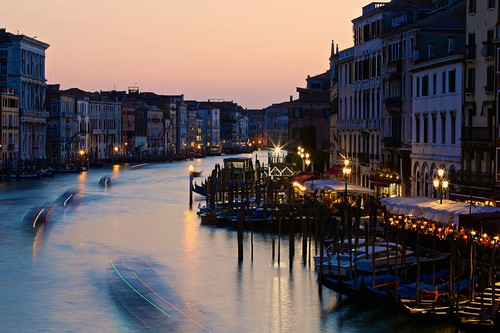 材料图片:那是2017年3月29日正在意大利威尼斯拍摄的华灯初上的威尼斯运河。新华社记者 金宇 摄